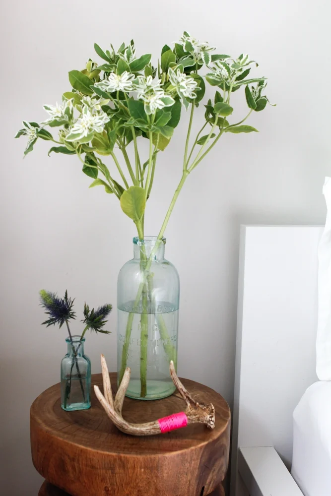 I love the non-traditional nightstand. Not only does the mirror on top reflect light, it always means this piece of furniture can double as a vanity unit.