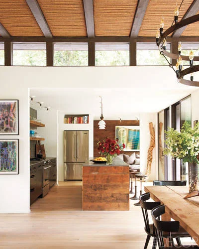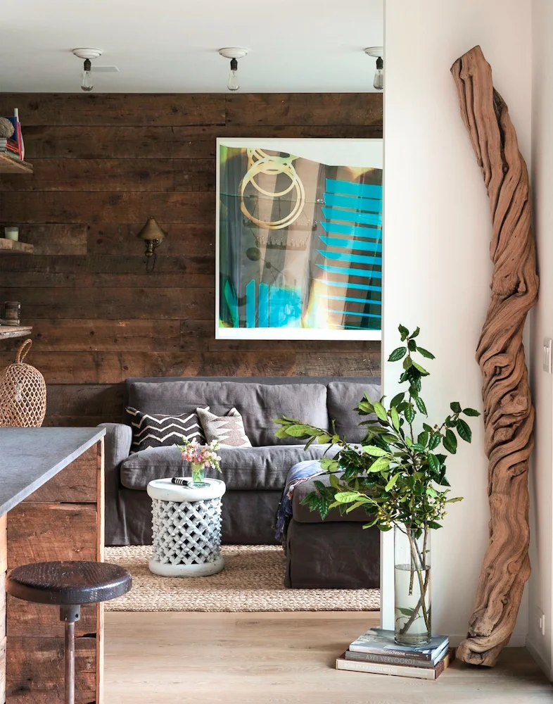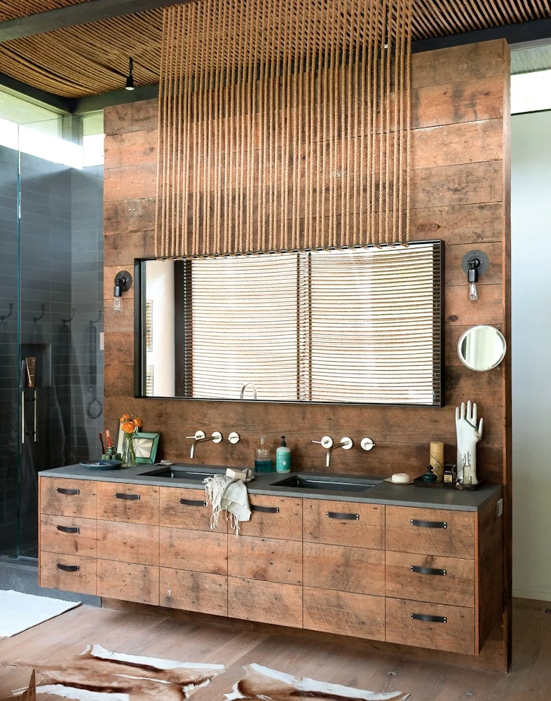 "I was immediately inspired to use natural materials in unconventional way…rough hewn wood, leather, and rope were the three simple and utilitarian elements I obsessed over throughout the realization of my home. I love juxtaposing elements in most everything I do. I have a no-rules approach to design – embracing that unexpected mix of pairing the old and new, high and low, modern and traditional, grit and glamour! "